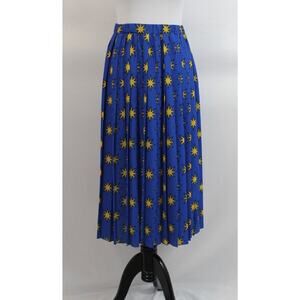Women's skirt by ALESSANDRO ENRIQUEZ. Size 38 Italian, about a 2/XS US. Blue with yellow stars, midi length, pleated. Good condition, no stains, holes or pilling. 98% polyester, 2% elastane, made in Italy.