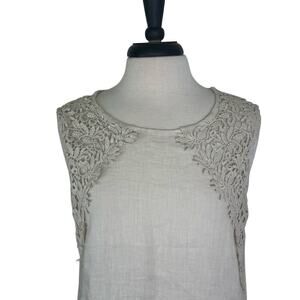 ALESSIA PICINI Linen Shift Dress Beige Sleeveless Lace Made in Italy Sz S