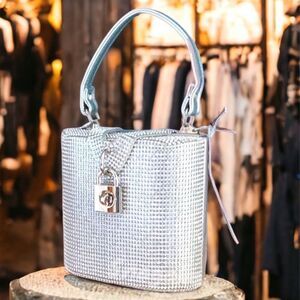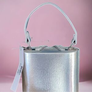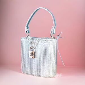 ALESSIA NWT TOP HANDLE SATCHEL CROSSBODY BAG SILVER SHINY RHINESTONE BLING PARTY