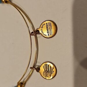 ALEX AND ANI Green & Goldtone Beads on 2 3/8" to 3"Dia. Goldtone Wire Bracelet.