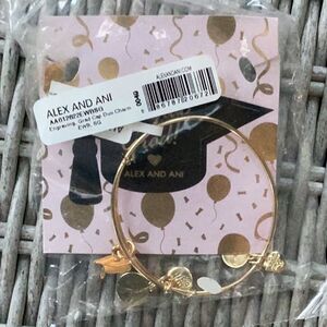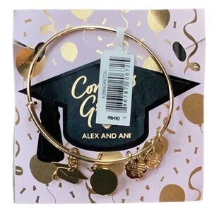 ALEX + ANI NEW GRADUATION CAP DUO CHARM BANGLE BRACELET SHINY GOLD