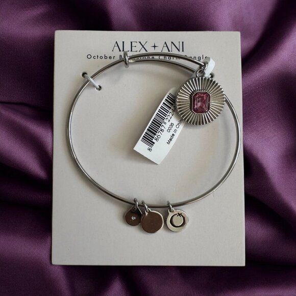 Celebrate October birthdays with this stunning ALEX & ANI bangle bracelet, featuring a sparkling birthstone charm. Perfect for gifting or adding a personal touch to your jewelry collection.
