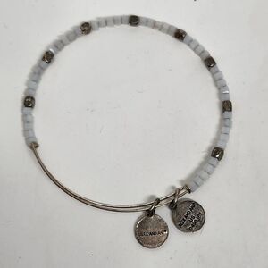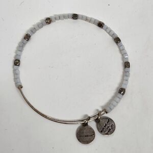 ALEX And ANI White and Silver Tone Beaded Bangle Bracelet