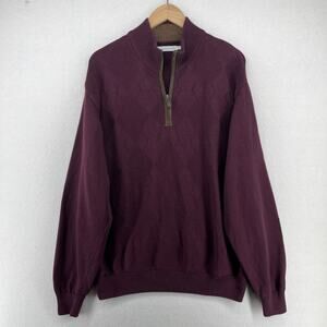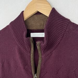ALEX CANNON Sweater Mens XL 1/4 Zip Jumper Argyle Cotton Pullover Maroon
