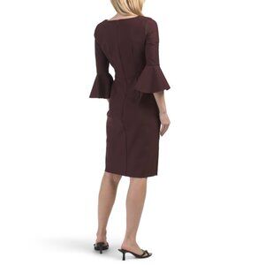 ALEX EVENING maroon Square Neck Bell Sleeve Sheath Mini Dress