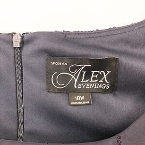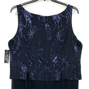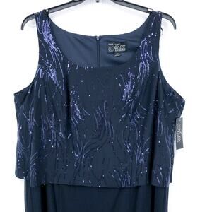 ALEX EVENINGS Chiffon & Sequin Dress & Jacket Set 18W Navy Blue Formal NWT