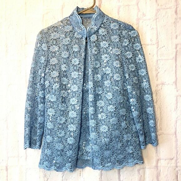 ALEX EVENINGS Formal Sequin & Lace Cami Jacket 2pc Set Small