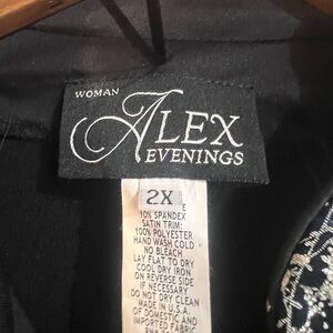 Elevate your formal wardrobe with the Alex Evenings Women's Plus Size Printed jacket, a stunning combination of sophistication and comfort. This versatile ensemble features an embroidered elongated jacket, perfect for special occasions, weddings, or elegant evenings out. The jacket showcases a refined mandarin collar, hook neck closure, and 3/4 sleeves, complemented by elegant piping detail throughout. Glitter knit fabric adds a subtle sparkle to your ensemble. Designed specifically for plus-size figures, this cardigan offers both style and comfort. The elongated jacket provides graceful coverage, while the comfortable fit ensures you'll feel confident and beautiful all evening long.
