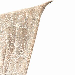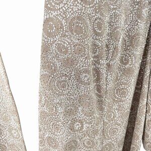 Elegant and lightweight open-front jacket from Alex Evenings with a beige and white swirl pattern and silver shimmery dots throughout. Comfortable stretch fabric for flattering fit and ease of movement.