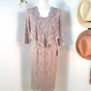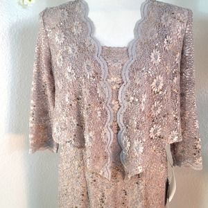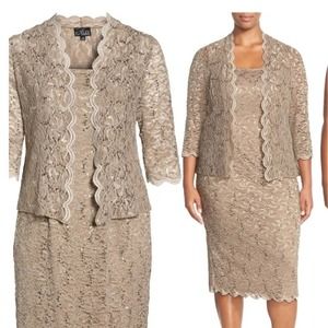 ALEX EVENINGS NORDSTROM LACE COCKTAIL DRESS WITH JACKET DARK CHAMPAGNE SZ 8 …