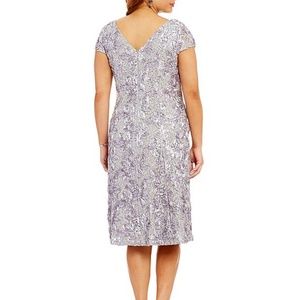 ALEX EVENINGS PLUS SIZE TEA-LENGTH ROSETTE DRESS