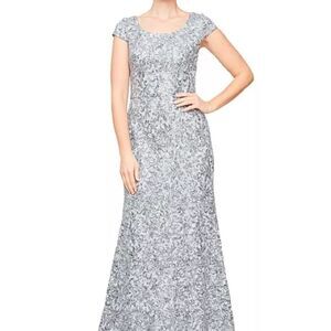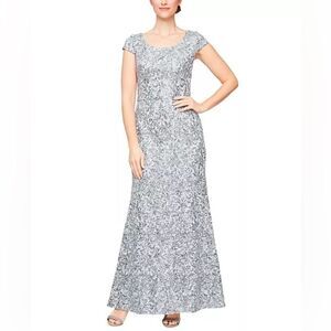 The epitome of stunning, this glittering lace petite dress from Alex Evenings features cap sleeves and a gorgeous silhouette.