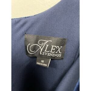 ALEX EVENINGS Plus Size Ruched Velvet Dress Blue Stones Size 16 A000149