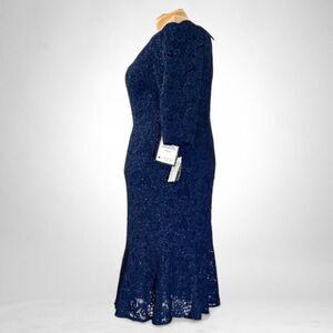 ALEX EVENINGS Scallop Detail Lace Navy Curvy Dress, NEW! Size 16W