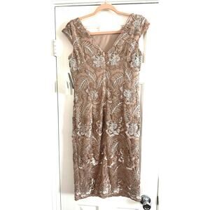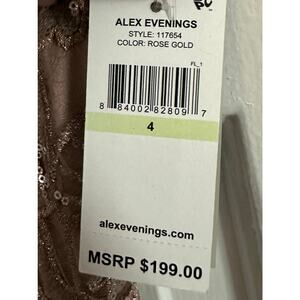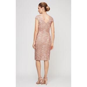 ALEX EVENINGS Short Embroidered Sequin Lace Cocktail Dress Rose Gold - Sz 4 NWT