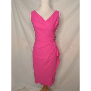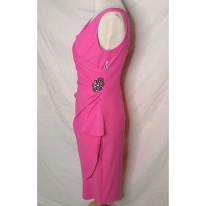 ALEX EVENINGS Side Ruched Embellished Slimming Cocktail Dress Hot Pink 4 NEW