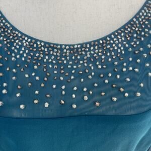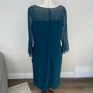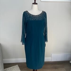 ALEX EVENINGS Women's Embellished Illusion Neck Sheath Dress Size 16 In Peacock