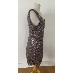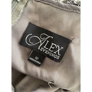 ALEX EVENINGS Women’s Silver Sequined Lace Sleeveless Dress size 12.