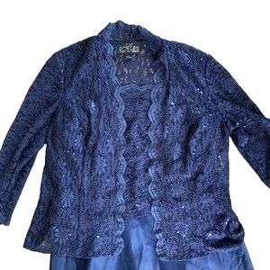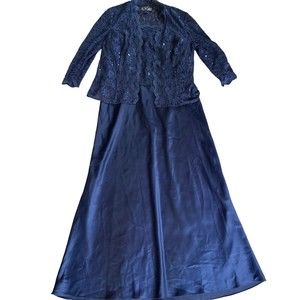 ALEX EVENINGS Womens Size 12 Lace And Satin Gown With Lace Jacket Blue NWT