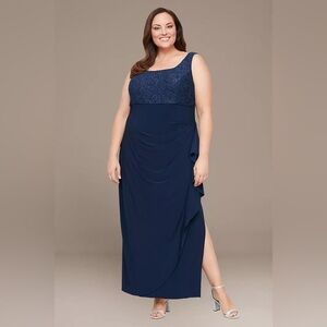 ALEX EVENINGS Plus Size Empire Waist Lace Dress with Open Jacket