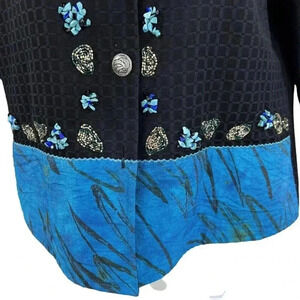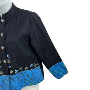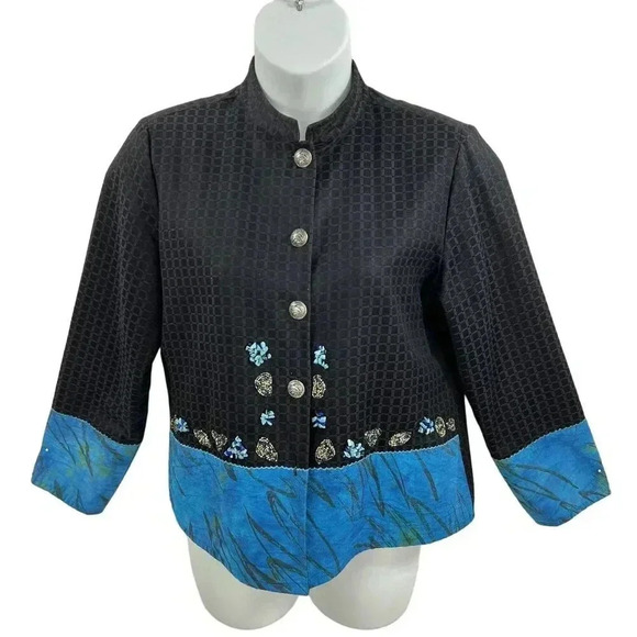 ALEX KIM Womens M Artful Mandarin Collar Jacket Front Embellish Embroidered Boho