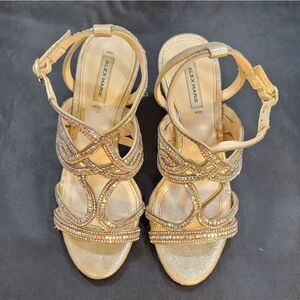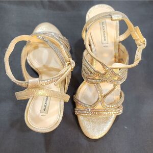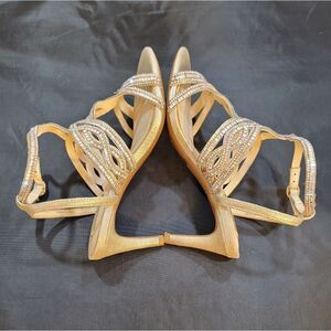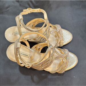 ALEX MARIE HIGH HEEL STILETTO OPEN-TOE RHINESTONE EMBELLISHMENTS DESIGN SANDAL SIZE 5.5M COLOR TAN ALL MAN-MADE MATERIAL LINING UPPER SYNTHETIC SOLE MATERIAL FEATURES ADJUSTABLE BUCKLE ANKLE STRAP CLOSURE HEEL HEIGHT MEASUREMENTS APPROX 4"INCHES THIS ITEMS IS PRE-OWNED EXCELLENT CONDITION WITH ONLY LIGHT SIGNS OF WEAR IF ANY CHECK THE PICTURES