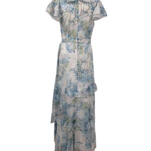 ALEX MARIE Lillian Floral Print Maxi Gown Dress Womens 6 Cap Flutter Sleeve NWT