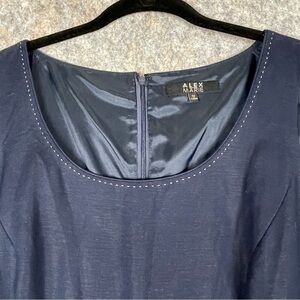 ALEX MARIE Navy Blue Linen Blend Career Church Minimalist Shift Dress - Sz 12