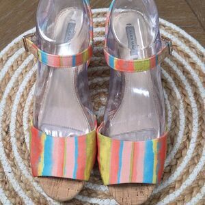 ALEX MARIE RAINBOW STRIPED CORK WEDGE SANDAL SZ 8, Great condition, 3 inch wedge