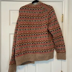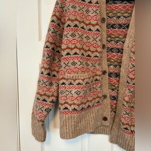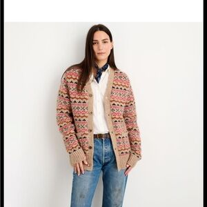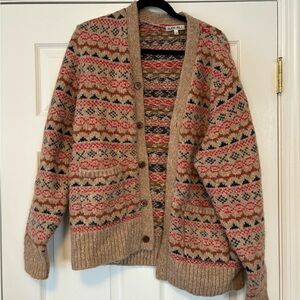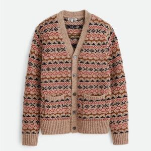 ALEX MILL Fair Isle Cardigan Sweater in Camel Multi Large