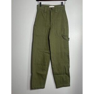 The ALEX MILL Phoebe Straight Leg Cargo Pants in size 24 are a stylish and functional addition to any woman's wardrobe. Made from comfortable cotton, these pants feature a solid green color that adds a pop of color to any outfit. The straight leg style and cargo pockets give them a casual yet utility-inspired look, perfect for everyday wear. Easy to care for with machine washable instructions, these pants are versatile and practical for any woman on the go.