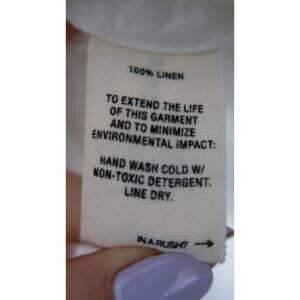 Like new, ruffled trim at the neckline and sleeves provides a sophisticated finish for this airy linen midi dress cinched with a matching waist tie.