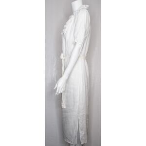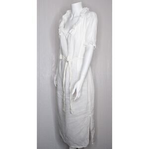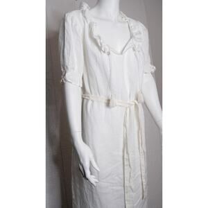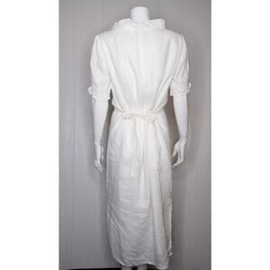 ALEX MILL 'Regan' White Linen Ruffle Collar Short Sleeve Midi Dress with Belt MEDIUM