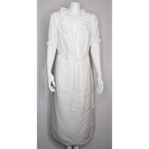 ALEX MILL 'Regan' White Linen Ruffle Collar Midi Dress with Belt MEDIUM