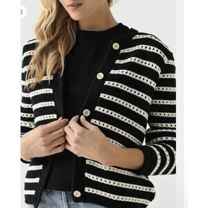 ALEX MILL Women's Hailey Stripe Cardigan Hailey Cardigan Navy/Ivory NWT L $185