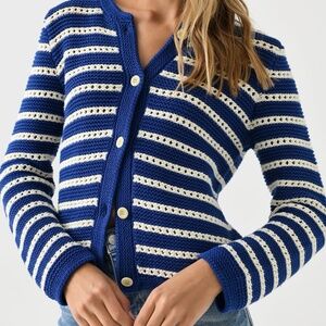 ALEX MILL Women's Hailey Stripe Cardigan Royal Blue Knit Small EUC