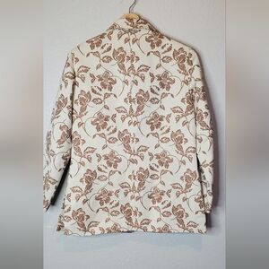 ALEX NEW YORK Cream Cognac Embroidered Satin Eccentric Blazer Jacket Size 6