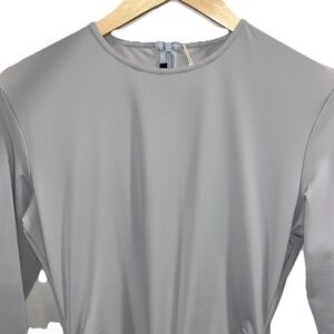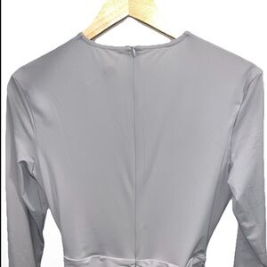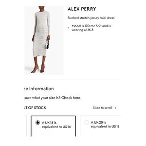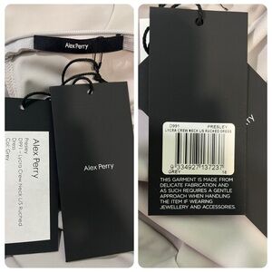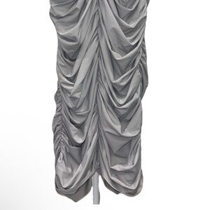 ALEX PERRY Presley dress midi grey silver 14 ruched stretch knit formal NWT NEW