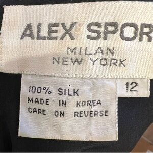 ALEX SPORT MILAN NEW YORK Silk Long Sleeved Blouse Womens 12 Black Elega…