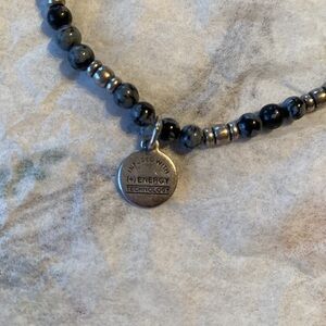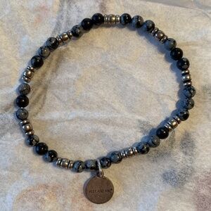 Like new Alex and Ani blue black and silver bead pull on stretchy bangle bracelet. EUC, good condition, approximately 2.5” across, see pictures for details.