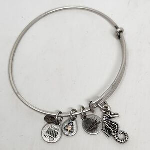 Silver tone bangle bracelet with a "sea horse" charm. This is the exact piece you will receive so please examine the photos closely. There is wear on the finish from normal wear. Thank you so much for looking. I am always open to reasonable offers. Have a fantastic day!