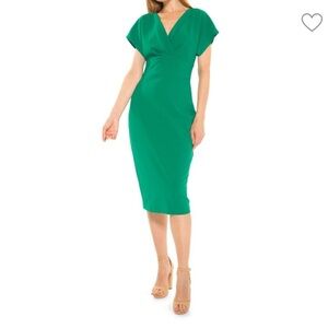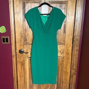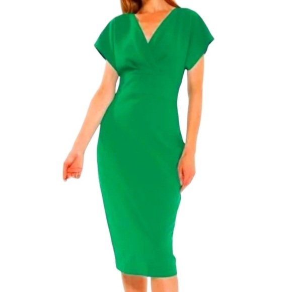 Gorgeous emerald green body-con midi dress by ALEXA ADMOR in size S! So figure flattering. Fully lined, with beautiful neckline, empire waist and cap sleeves, back zipper closure. Business to play.