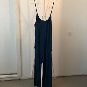 ALEXANDER + DAVID ONESIE ROMPER JUMPER JUMPSUIT BLUE TEAL SPAGHETTI STRAP LOOSE WIDE FLOWY JERSEY KNIT SIZE L