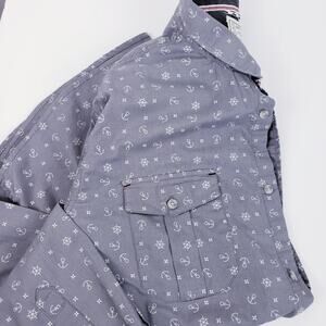 ALEXANDER JULIAN Mens Nautical Cotton Grey Anchor Button down Shirt Size XL