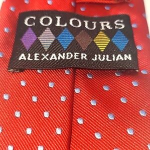 ALEXANDER JULIAN Red Blue Polka Dots Men's Tie