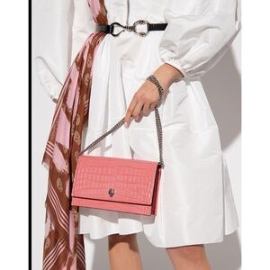 This stunning crossbody is crafted of crocodile embossed calfskin leather in pink.