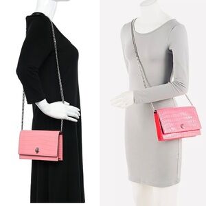 ALEXANDER MCQUEEN Calfskin Crocodile Embossed Skull Mini Crossbody Bag WOC NEW