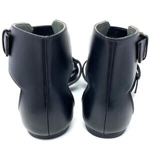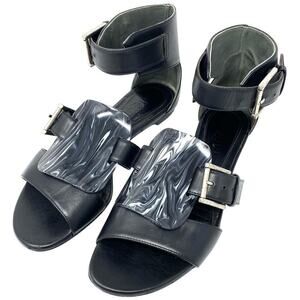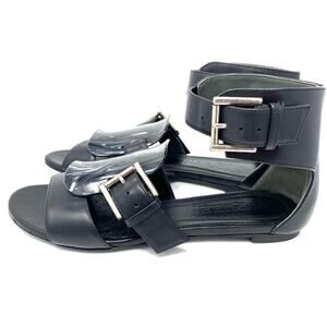 ALEXANDER MCQUEEN FLAT BLACK GLADIATOR SANDAL WITH FAUX TORTOISE BUCKLES DETAIL In very nice preloved condition. Moderate signs of wear throughout. SZ EU37 true to size. Size US 7. Current similar styles sell for 1250.00 US MSRP. Guaranteed authentic or your money back.