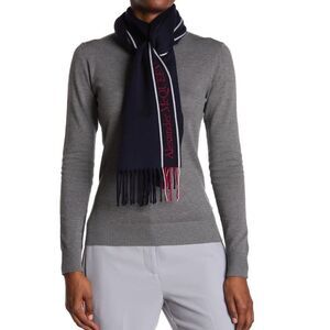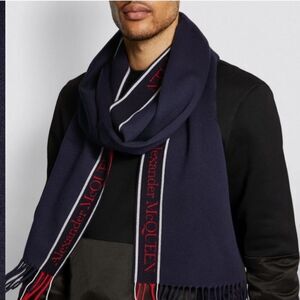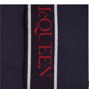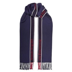 ALEXANDER MCQUEEN Fringe Wool & Cashmere Scarf, Navy/Red, Designer, NWT