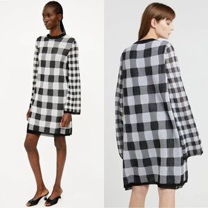 ALEXANDER MCQUEEN Gingham Heritage Plaid Knit Long Sleeve Relaxed Fit Dress XS
